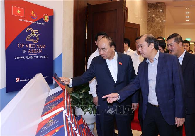 Thủ tướng Nguyễn Xuân Phúc, Chủ tịch ASEAN 2020, xem ấn phẩm phục vụ hội nghị. - Ảnh: Thống Nhất/TTXVN |