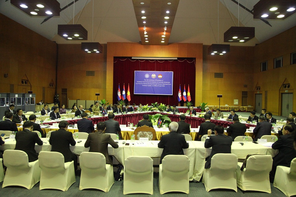 (VOV5) - Chiều qua (9/4), tại thủ đô Vientiane, Lào, diễn ra Hội nghị Chủ tịch Mặt trận ba nước Campuchia – Lào – Việt Nam, dưới sự đồng chủ trì của Chủ tịch Ủy ban Trung ương Mặt trận Lào Xây dựng Đất nước, Sinlavong Khoutphaythoune; Chủ tịch Hội đồng Quốc gia Mặt trận Đoàn kết Phát triển Tổ quốc Campuchia, bà Samdech Mensamaan, và Chủ tịch Ủy ban Trung ương Mặt trận Tổ quốc Việt Nam, Đỗ Văn Chiến. Tại hội nghị, các đại biểu nhấn mạnh quan hệ hợp tác toàn diện và đa dạng giữa các địa phương và hợp tác biên giới là nét nổi bật, tạo ra nền tảng và chiều sâu của quan hệ đặc biệt Việt Nam - Lào, Việt Nam - Campuchia.