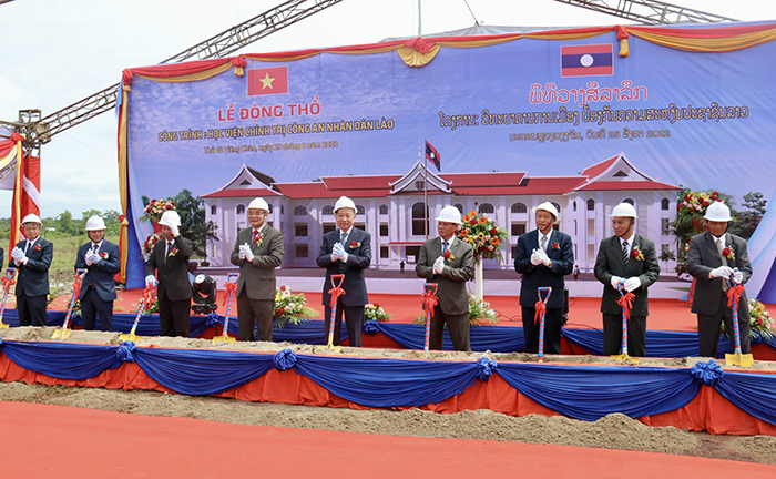 Phát biểu tại lễ động thổ, Bộ trưởng Tô Lâm nhấn mạnh Bộ Công an Việt Nam xác định công trình Học viện Chính trị CAND Lào là biểu tượng của tình đoàn kết đặc biệt giữa 2 Đảng, 2 Nhà nước và nhân dân 2 nước nói chung, giữa lực lượng công an 2 nước nói riêng, việc khởi công công trình góp phần thiết thực chào mừng kỷ niệm 60 năm ngày Việt Nam và Lào thiết lập quan hệ ngoại giao, 45 năm ngày ký Hiệp ước Hữu nghị và Hợp tác Việt Nam – Lào, Lào – Việt Nam và thực hiện Năm Đoàn kết hữu nghị Việt Nam – Lào, Lào – Việt Nam 2022, đồng thời góp phần củng cố và tăng cường mối quan hệ giữa 2 nước vì sự trường tồn và phát triển phồn vinh của 2 dân tộc.