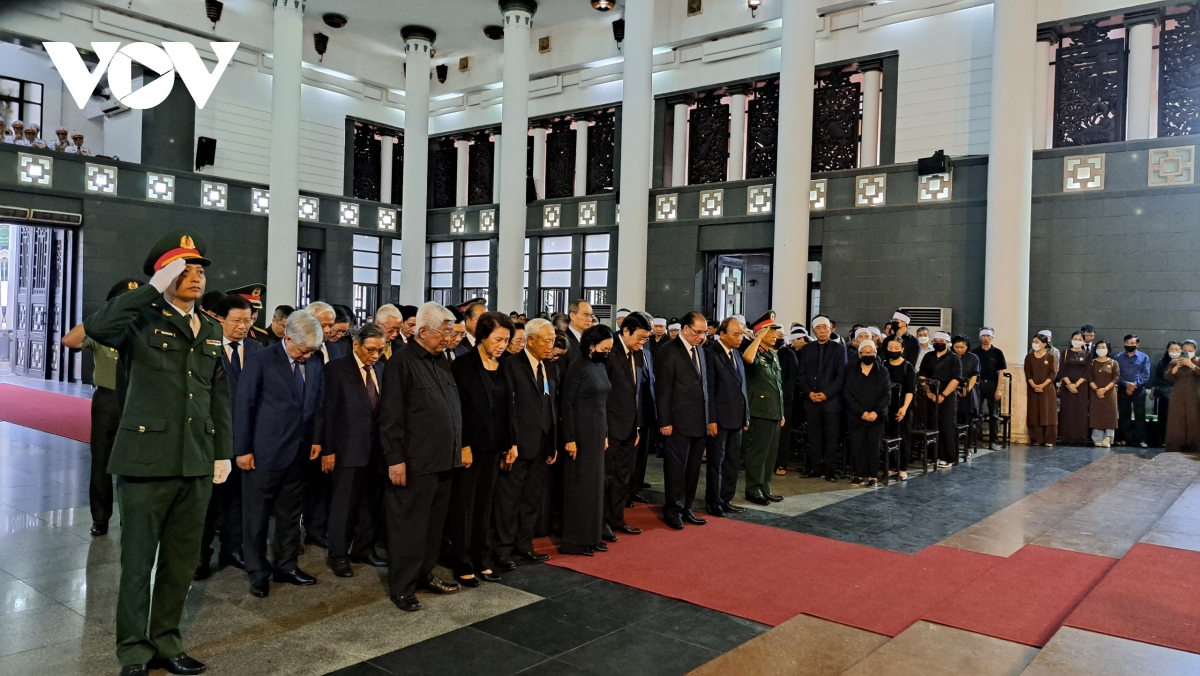 Lễ viếng nguyên Phó Thủ tướng Vũ Khoan diễn ra sáng 27/6 tại Nhà tang lễ Quốc gia (số 5 Trần Thánh Tông, Hà Nội). Ảnh: Việt Cường/VOV |