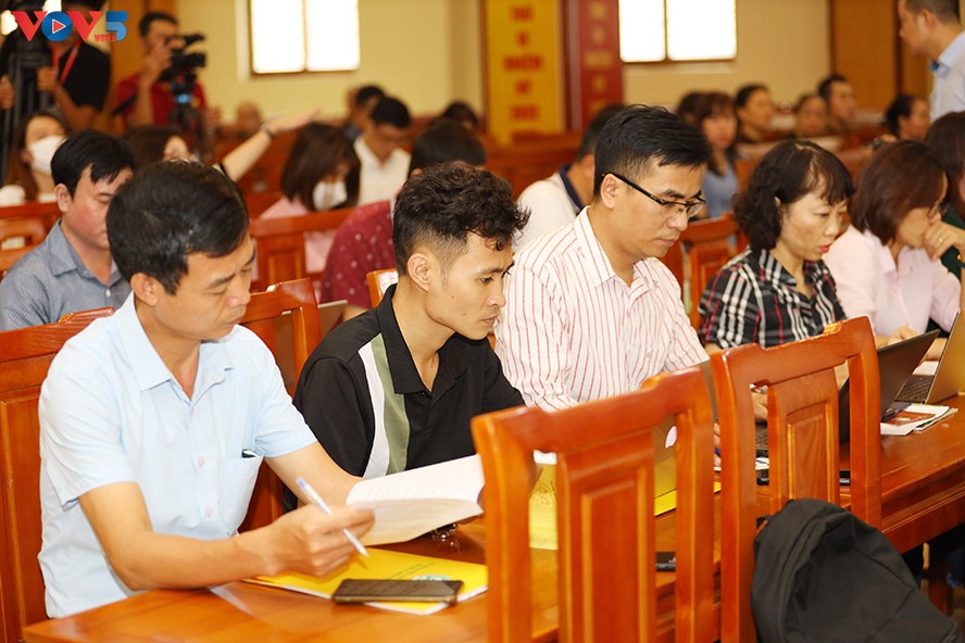 Các phóng viên tham dự buổi họp báo. Ảnh: Vĩnh Phong/ VOV5 |