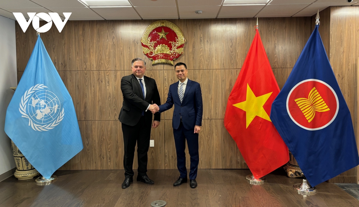 Đại sứ Đặng Hoàng Giang và Thứ trưởng Ngoại giao Bosnia & Herzegovina tại Phái đoàn thường trực Việt Nam tại Liên hợp quốc. Ảnh: PV/VOV-Washington |