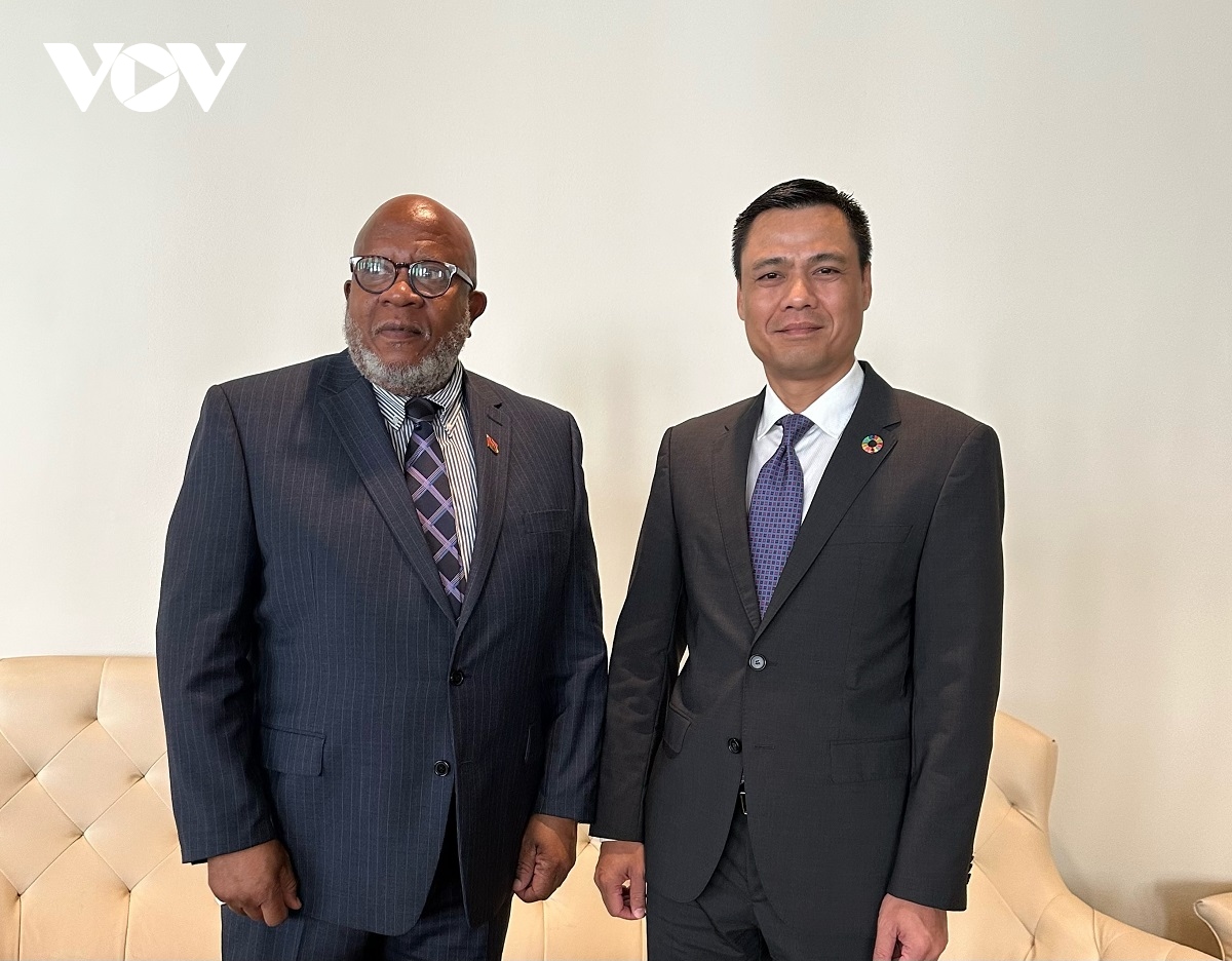 Đại sứ Đặng Hoàng Giang, Trưởng Phái đoàn Việt Nam tại Liên hợp quốc (LHQ), ngày 17/7, có buổi làm việc với Đại sứ Dennis Francis, Chủ tịch Đại hội đồng Liên hợp quốc (ĐHĐ LHQ) Khóa 78 kiêm Trưởng Phái đoàn Trinidad and Tobago tại Liên Hợp Quốc.