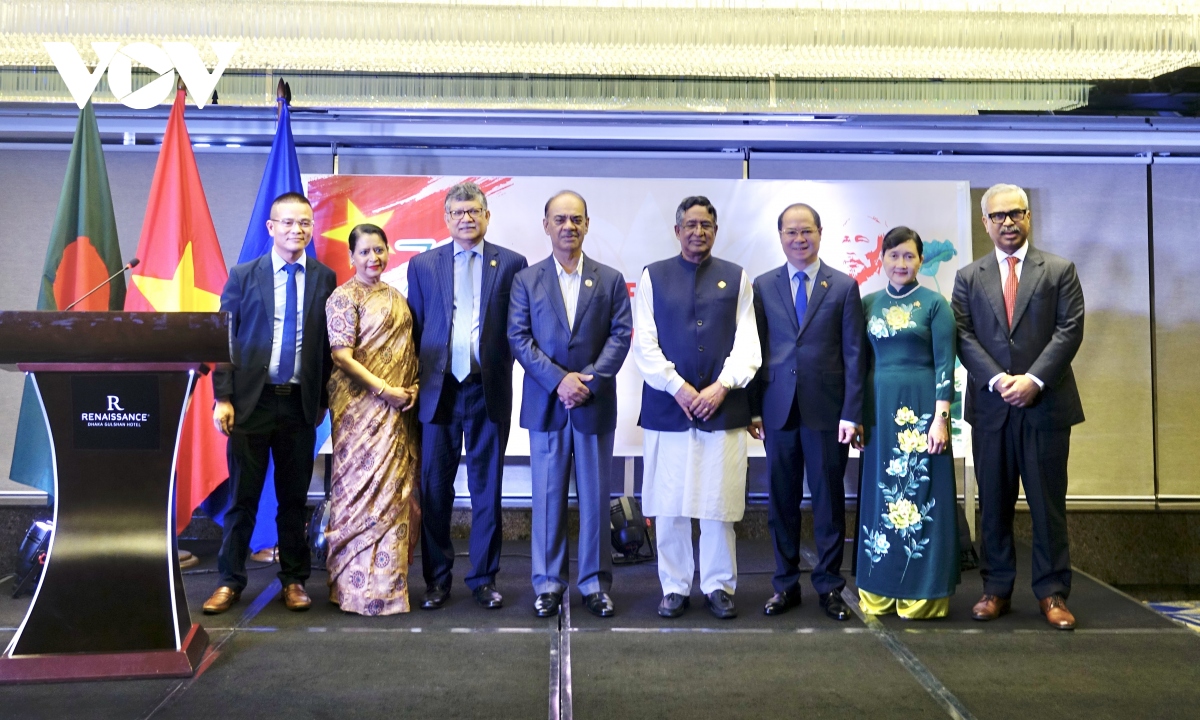Đại sứ Việt Nam tại Bangladesh Nguyễn Mạnh Cường cùng các khách mời Bangladesh. Ảnh: VOV |