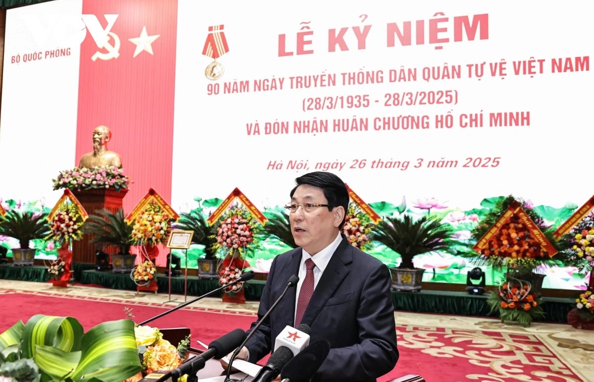 Chủ tịch nước Lương Cường phát biểu tại lễ kỷ niệm. Ảnh: VOV |
