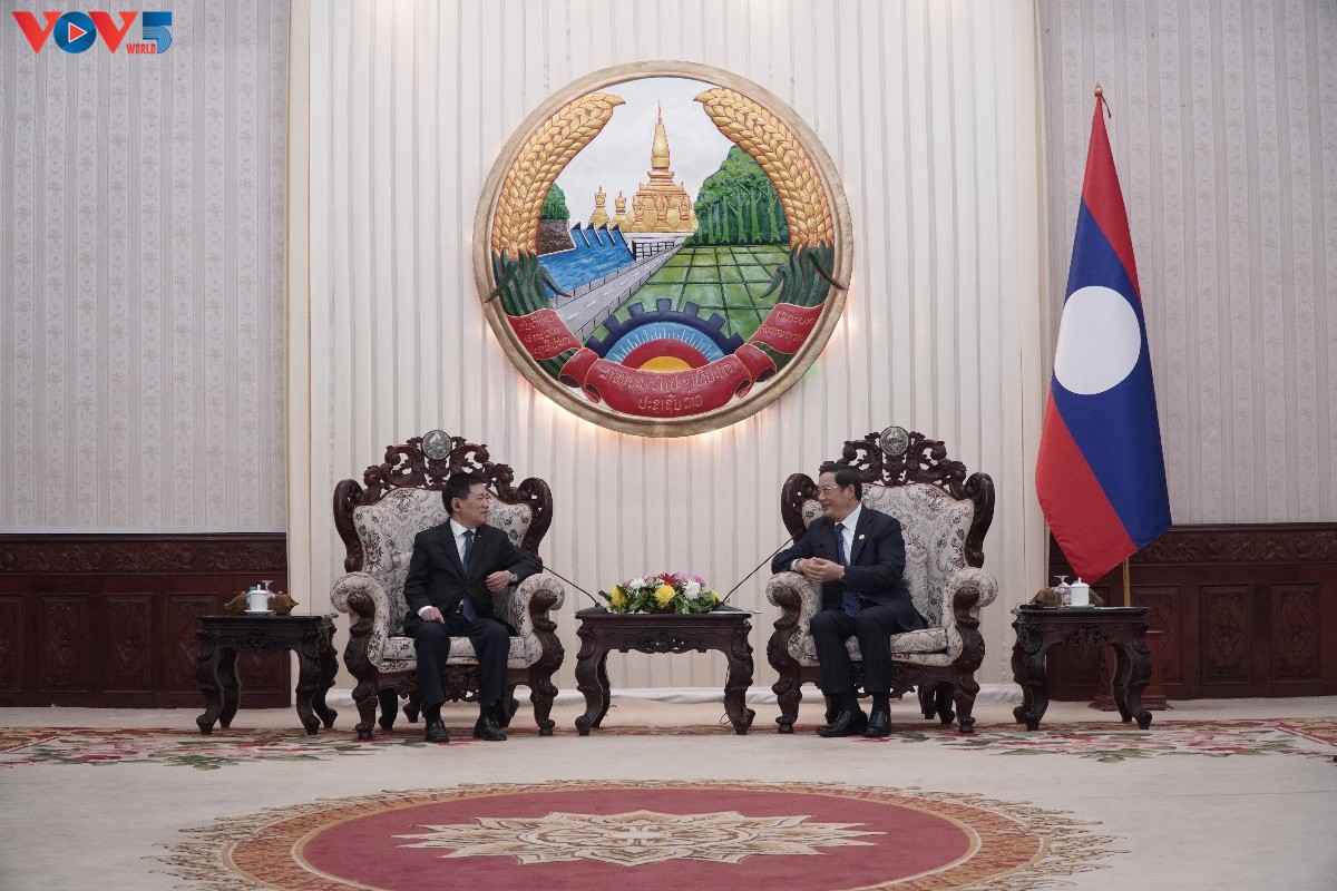 Phó Thủ tướng Chính phủ Hồ Đức Phớc hội kiến Thủ tướng Chính phủ Lào Sonexay Siphandone. Ảnh: Cảnh Thành/VOV |