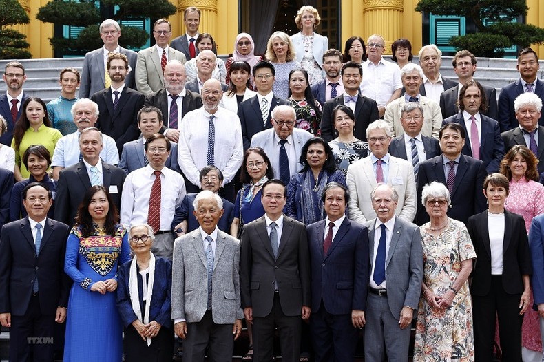 Chủ tịch nước Võ Văn Thưởng gặp các nhà khoa học quốc tế và Việt Nam tham dự Hội nghị “Các cửa sổ nhìn ra vũ trụ” - Ảnh: Thống Nhất/TTXVN |