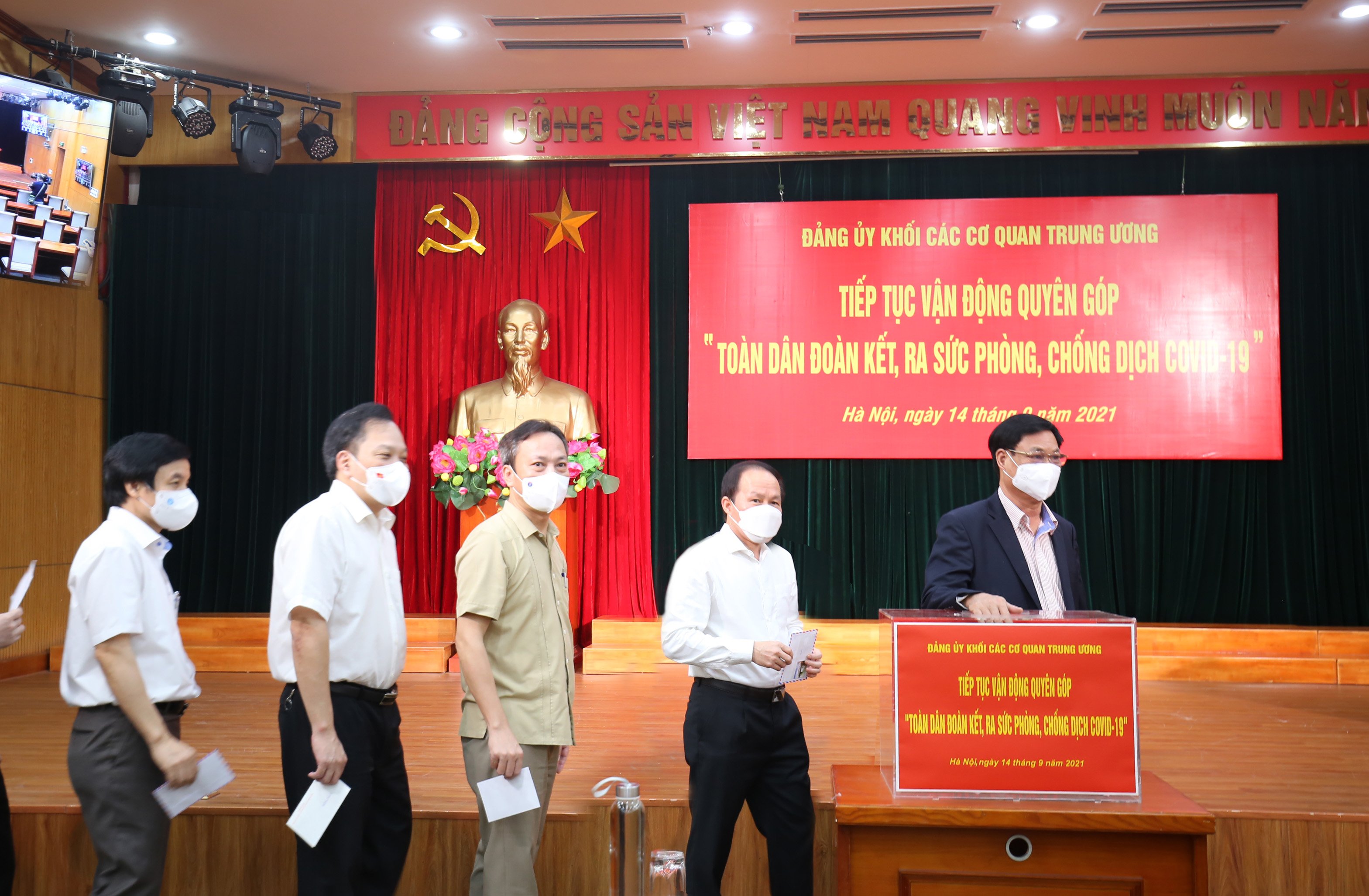 Tại buổi lễ, Bí thư Đảng ủy Khối các cơ quan Trung ương Huỳnh Tấn Việt kêu gọi các cán bộ, công chức, người lao động với truyền thống đoàn kết “tương thân tương ái” trách nhiệm vì cộng đồng, tích cực tham gia vận động, quyên góp, ủng hộ Quỹ phòng, chống dịch Covid-19.