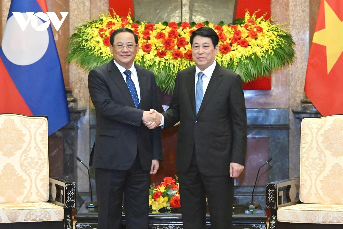 Chủ tịch nước Lương Cường và Thủ tướng Lào Sonexay Siphandone tại buổi tiếp. Ảnh: VOV |