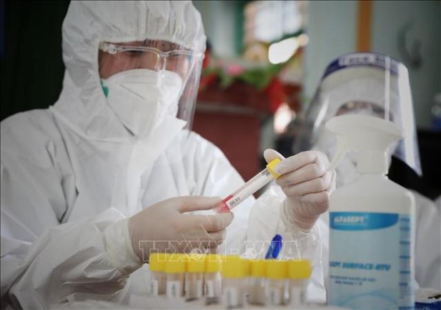 Lực lượng y tế lấy mẫu và làm xét nghiệm tại tổ dân phố Hoàng Mai 1, thị trấn Nếnh (Bắc Giang). Ảnh: Danh Lam/TTXVN |