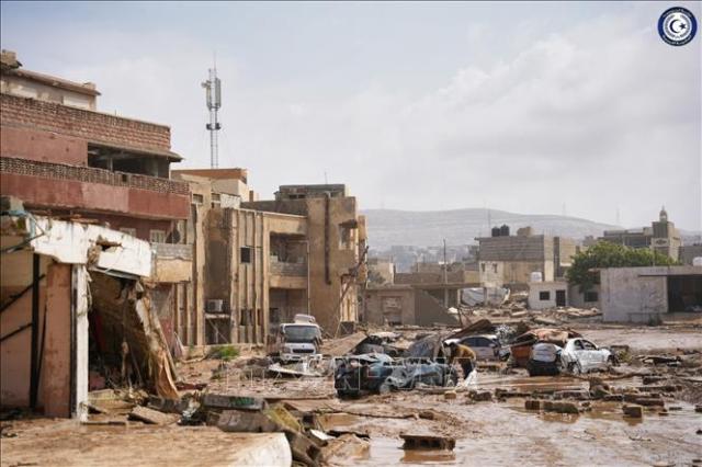 Cảnh tàn phá sau trận lũ quét do bão Daniel tại Derna, miền Đông Libya, ngày 11/9/2023. Ảnh: THX/TTXVN |