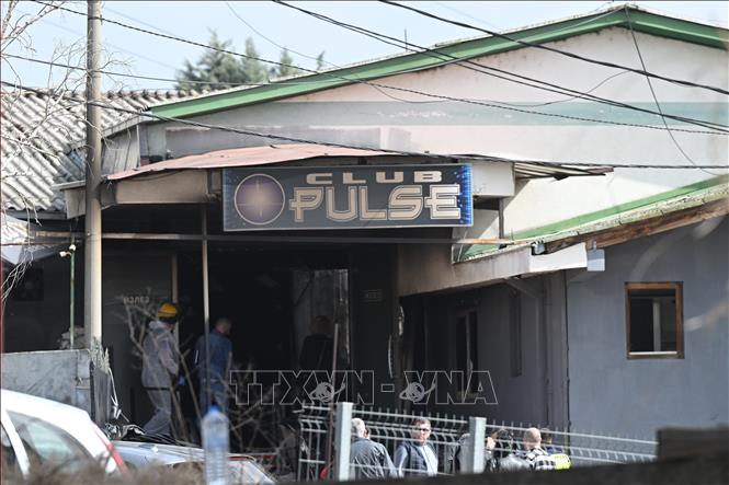 Hiện trường vụ hỏa hoạn tại câu lạc bộ đêm ở Kocani, Bắc Macedonia, ngày 16/3/2025. Ảnh: THX/TTXVN |