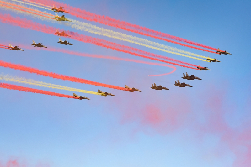 Đội bay biểu diễn Black Eagles của Không quân Hàn Quốc tại lễ khai mạc Seoul ADEX 2023. |