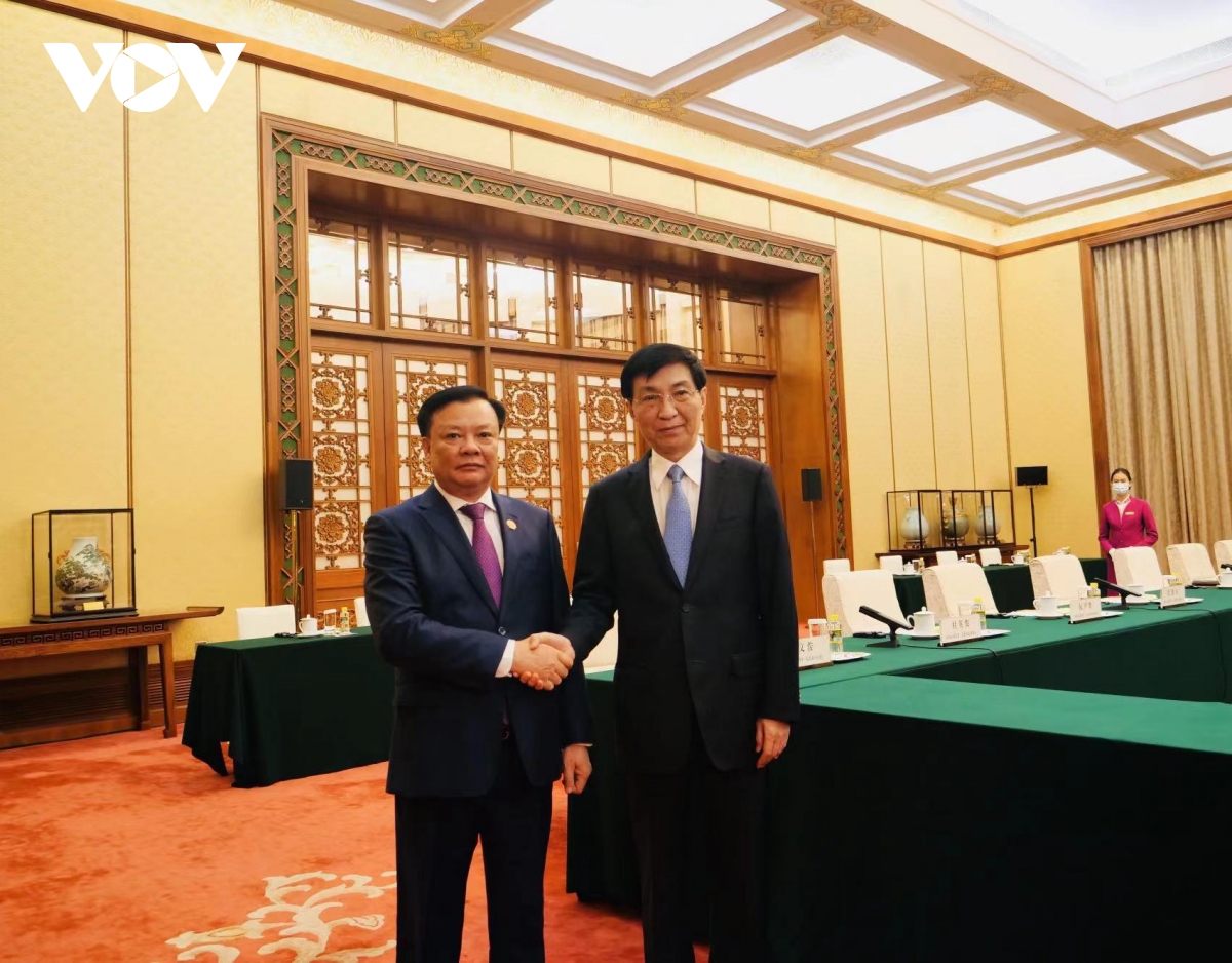 Bí thư Thành ủy Hà Nội Đinh Tiến Dũng và Chủ tịch Chính hiệp Trung Quốc Vương Hộ Ninh. Ảnh: PV/VOV-Bắc Kinh |