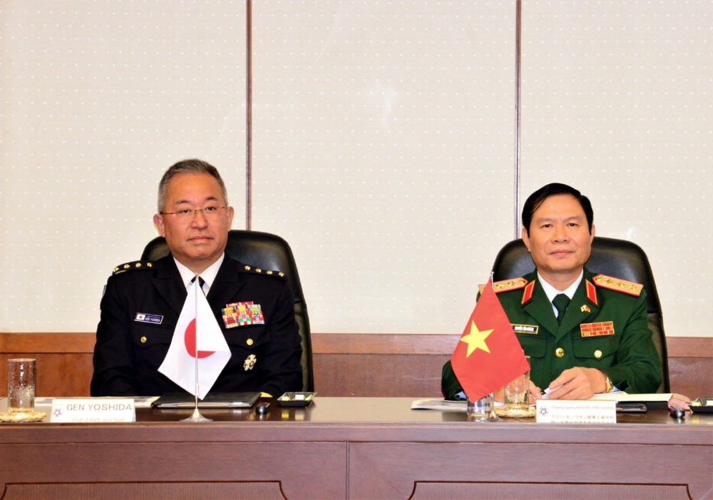 Sáng nay (11/10), tại trụ sở Bộ Quốc phòng Nhật Bản, ở Tokyo, Đại tướng Yoshida Yoshihide, Tham mưu trưởng Liên quân Nhật Bản, chủ trì Lễ đón chính thức đoàn đại biểu quân sự cấp cao Quân đội nhân dân Việt Nam do Thượng tướng Nguyễn Tân Cương, Tổng Tham mưu trưởng Quân đội nhân dân Việt Nam, Thứ trưởng Bộ Quốc phòng, làm Trưởng đoàn, thăm chính thức Nhật Bản.