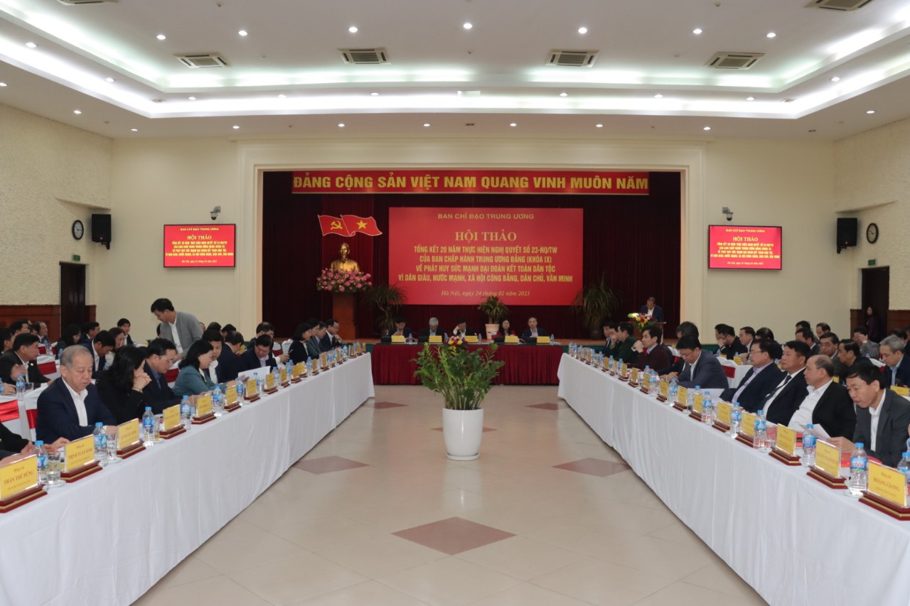Sáng nay (24/02), tại Hà Nội, diễn ra Hội thảo tổng kết 20 năm thực hiện Nghị quyết 23 của Ban chấp hành Trung ương Đảng (Khóa IX) về phát huy sức mạnh đại đoàn kết toàn dân tộc vì mục tiêu dân giàu, nước mạnh, xã hội công bằng, dân chủ, văn minh.