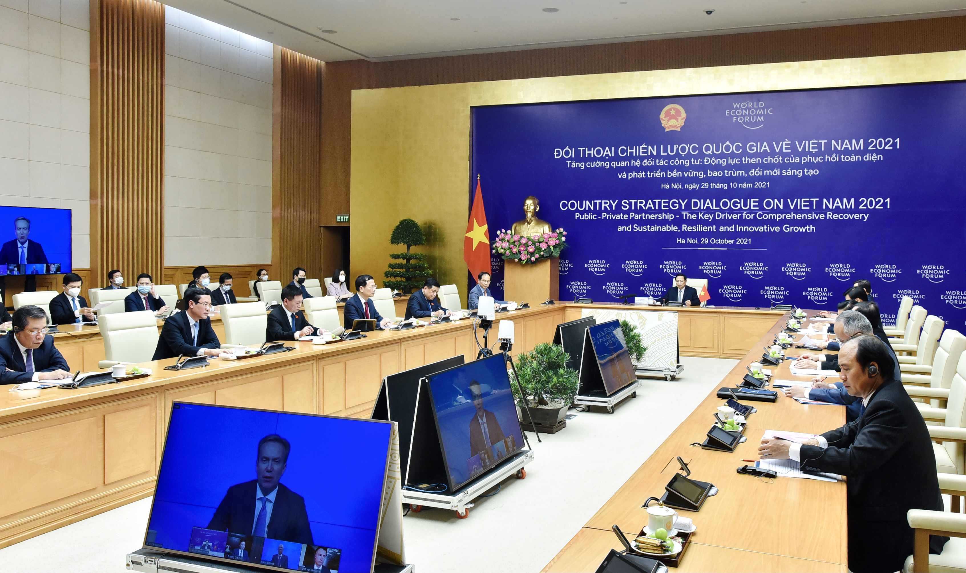 Nhận lời mời của Nhà sáng lập và Chủ tịch điều hành Diễn đàn Kinh tế thế giới (WEF) Giáo sư Klaus Schwab, ngày 29/10, Thủ tướng Chính phủ Phạm Minh Chính đồng chủ trì Đối thoại Chiến lược quốc gia Việt Nam - WEF lần đầu tiên bằng hình thức trực tuyến.