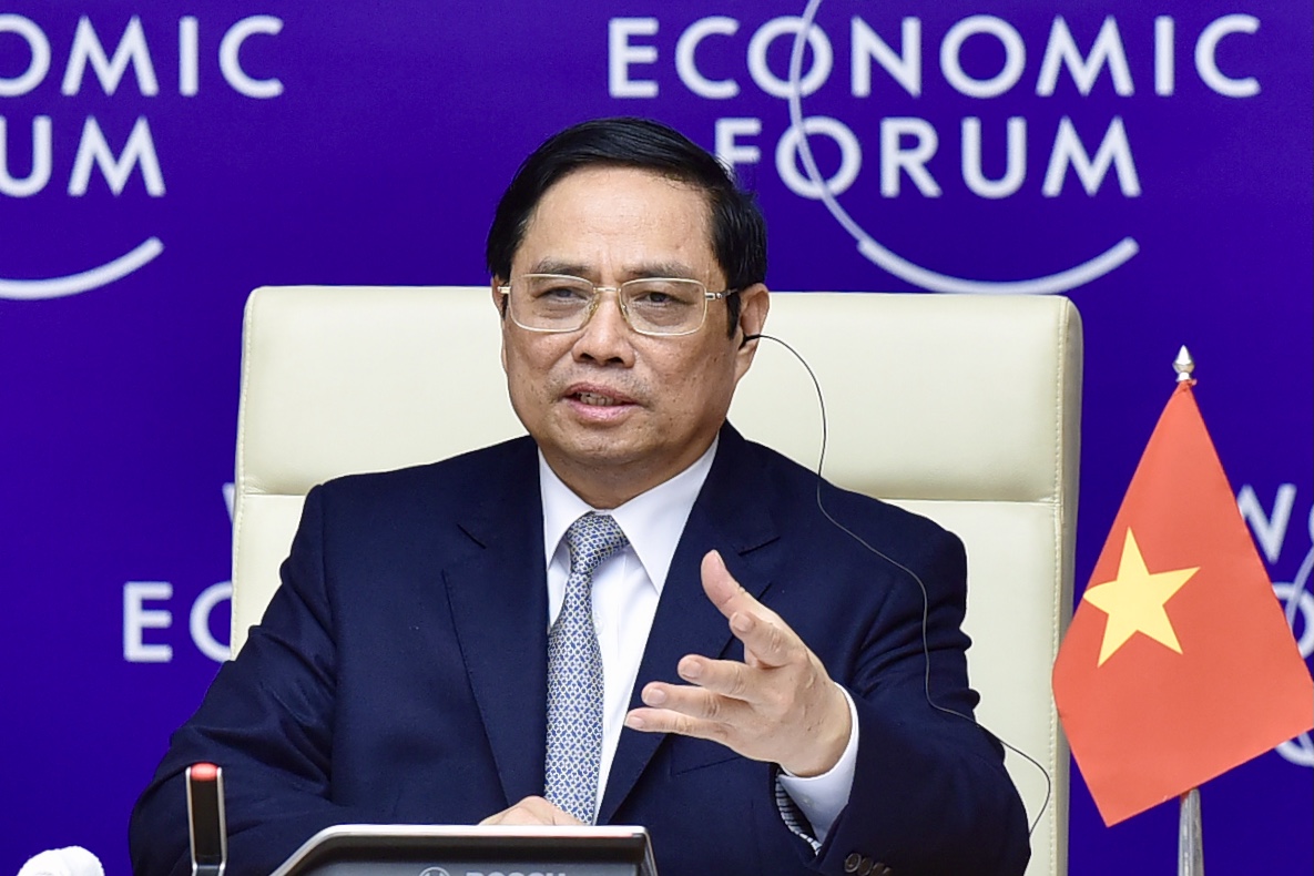 Sau phát biểu mở đầu của Giáo sư Klaus Schwab, Thủ tướng Chính phủ Phạm Minh Chính có bài phát biểu quan trọng với thông điệp chính sách mạnh mẽ khẳng định nỗ lực và quyết tâm Việt Nam về phục hồi, phát triển kinh tế - xã hội, thực hiện tầm nhìn, mục tiêu và khát vọng phát triển đất nước. Thủ tướng nhấn mạnh đây là thời điểm thử thách bản lĩnh, sự sáng tạo và năng lực thích ứng của cả chính phủ và doanh nghiệp; đây cũng là thời điểm chính phủ và doanh nghiệp cần tăng cường quan hệ đối tác công-tư để cùng vượt qua khó khăn.