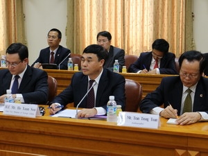 | Thứ trưởng Ngoại giao Hồ Xuân Sơn (giữa) tại buổi đối thoại. (Ảnh: Vienam+) |
