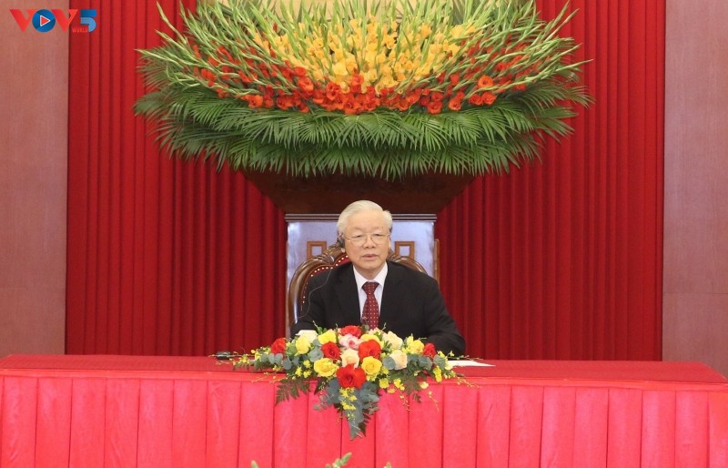 Toàn cảnh buổi điện đàm cấp cao của Tổng Bí thư Nguyễn Phú Trọng. Ảnh: Văn Hiếu/ VOV |