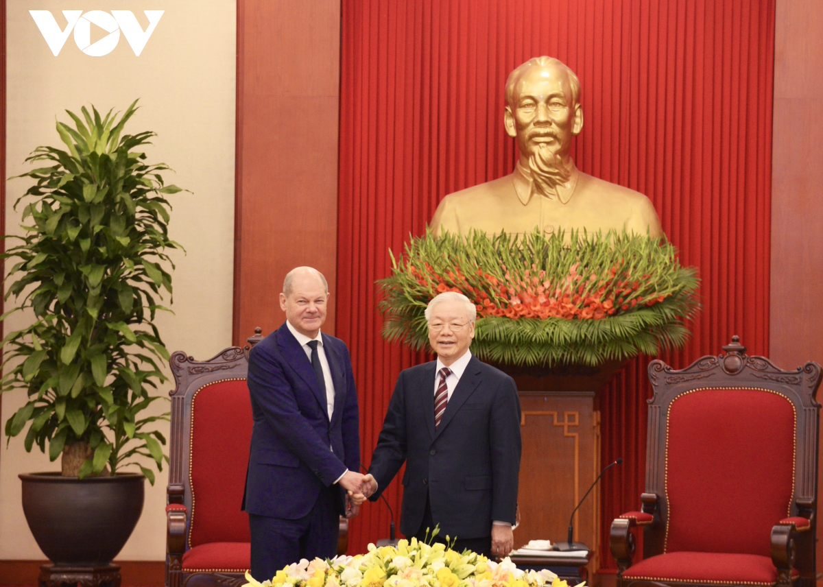 Tổng Bí thư Nguyễn Phú Trọng tiếp Thủ tướng Đức Olaf Scholz. Ảnh: VOV |