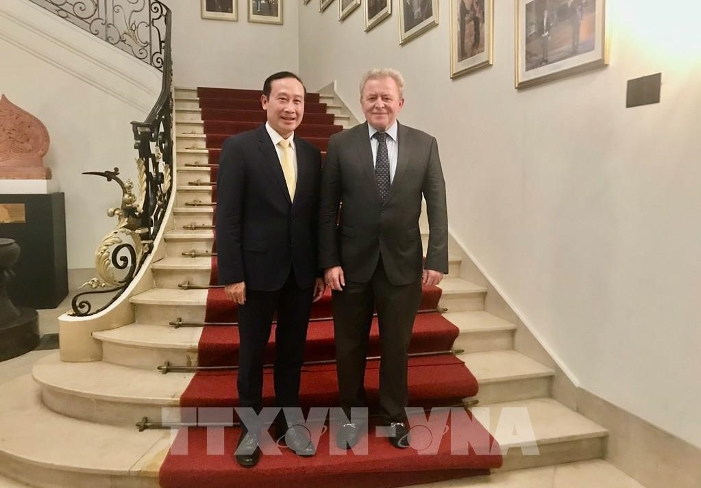 Tại Thủ đô Brussels (Vương quốc Bỉ), tối 19/7, Đại sứ - Trưởng phái đoàn Việt Nam bên cạnh Liên minh châu Âu (EU) Nguyễn Văn Thảo làm việc với ông Janusz Wojciechowski, Cao ủy phụ trách vấn đề nông nghiệp của EU.
