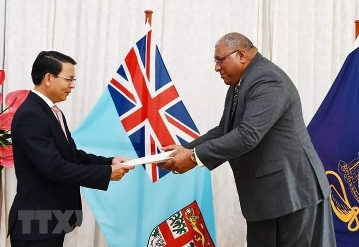 Hôm qua, tại thủ đô Suva của Fiji, Đại sứ Việt Nam tại New Zealand Nguyễn Văn Trung, kiêm nhiệm 3 đảo quốc Nam Thái Bình Dương, trình Quốc thư của Chủ tịch nước Võ Văn Thưởng lên Tổng thống Fiji, Ratu Wiliame Maivalili Katonivere.