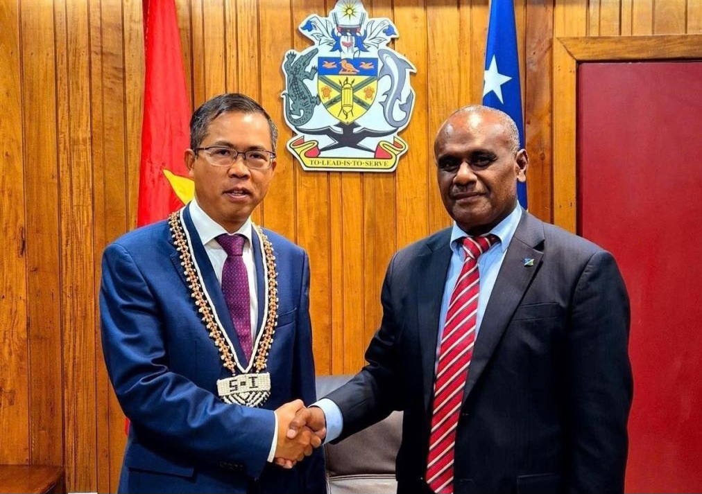 Đại sứ Việt Nam tại Australia kiêm nhiệm Solomon, ông Phạm Hùng Tâm, vừa trình quốc thư lên Quyền Toàn quyền, Chủ tịch Quốc hội Solomon John Patteson Oti tại Phủ Toàn quyền ở thủ đô Honiara của Solomon.