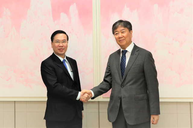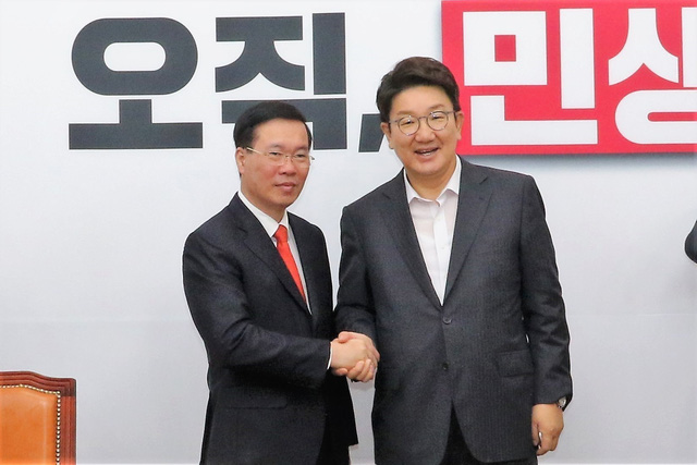Quyền Chủ tịch Đảng PPP Kwon Seong-dong tiếp Thường trực Ban Bí thư Võ Văn Thưởng. Ảnh: TTXVN |