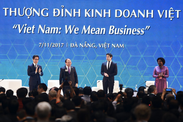 Thủ tướng Nguyễn Xuân Phúc tại Hội nghị thượng đỉnh kinh doanh Việt Nam. |