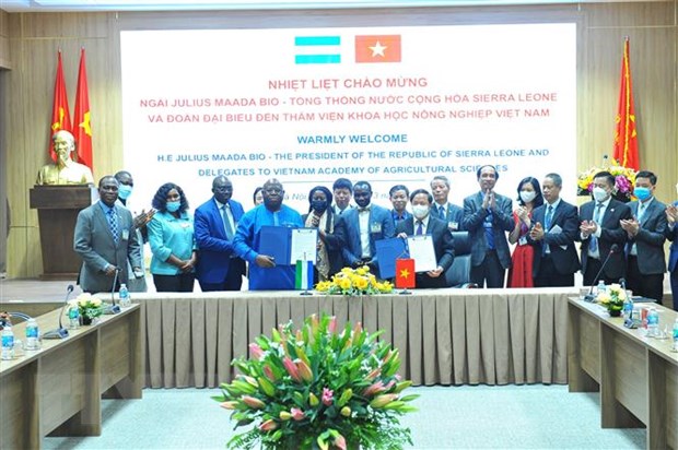 Dịp này, hai bên ký biên bản ghi nhớ nhằm thúc đẩy hợp tác giữa Sierra Leone và Viện Khoa học Nông nghiệp Việt Nam trong lĩnh vực trồng trọt.