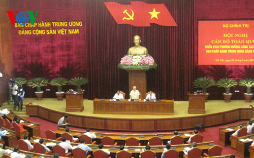 Hội nghị cán bộ toàn quốc triển khai phương hướng nhân sự Ban Chấp hành Trung ương Đảng khóa XII diễn ra hôm nay (28/05), tại Hà Nội, dưới sự chủ trì của Tổng Bí thư Ban Chấp hành Trung ương Đảng Cộng sản Việt Nam Nguyễn Phú Trọng, Thường trực Ban Bí thư Lê Hồng Anh, Trưởng Ban Tổ chức Trung ương Tô Huy Rứa.