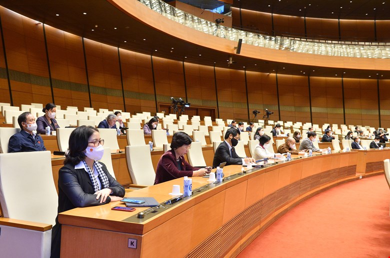 Các vị đại biểu Quốc hội hoạt động chuyên trách ở Trung ương tham dự tại hội trường Diên Hồng của Nhà Quốc hội. Ảnh minh họa: Quốc hộ |