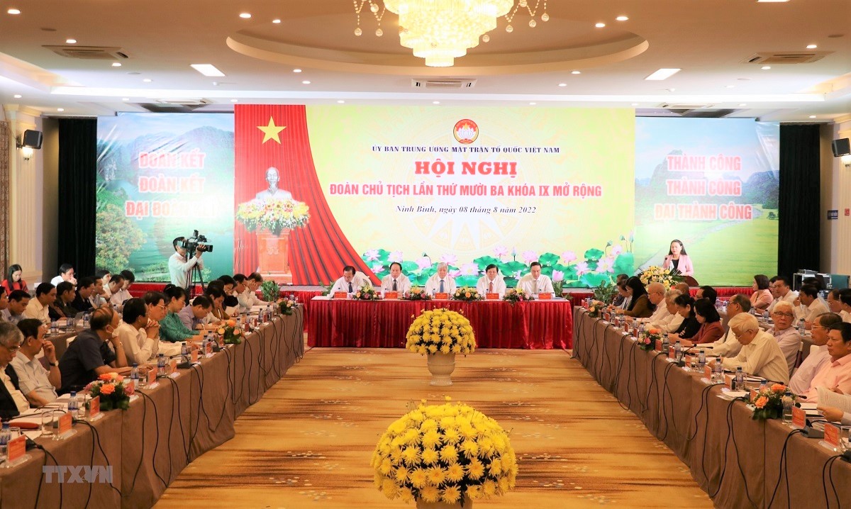 Quang cảnh Hội nghị Đoàn Chủ tịch Trung ương Mặt trận Tổ quốc Việt Nam lần thứ 13, Khóa 9 mở rộng. Ảnh: Đức Phương/TTXVN |