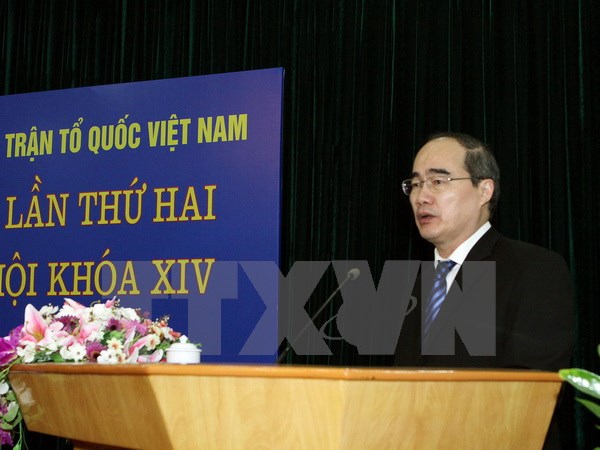 | Chủ tịch Ủy ban Trung ương Mặt trận Tổ quốc Việt Nam Nguyễn Thiện Nhân phát biểu tại Hội nghị. Ảnh: TTXVN |