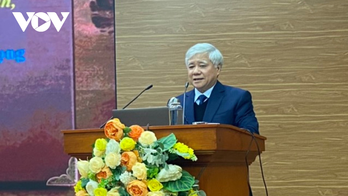 Bí thư Trung ương Đảng, Chủ tịch Uỷ ban Trung ương Mặt trận Tổ quốc Việt Nam Đỗ Văn Chiến phát biểu tại hội nghị. Ảnh: VOV |