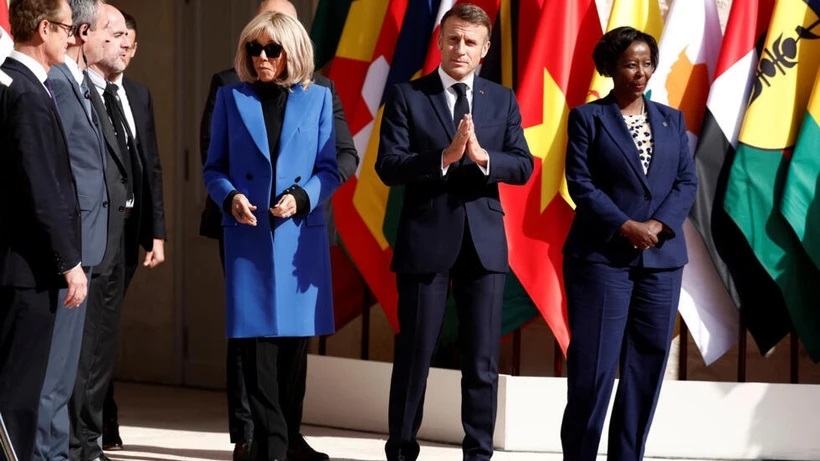 Tổng thống Pháp Emmanuel Macron cùng phu nhân Brigitte Macron và Tổng thư ký Tổ chức Quốc tế Pháp ngữ (OIF) Louise Mushikiwabo đến tham dự Hội nghị thượng đỉnh Pháp ngữ lần thứ 19. Nguồn: Reuters |