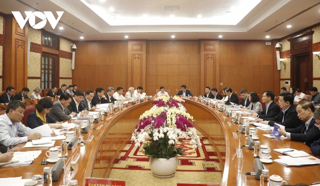 Hội nghị triển khai chương trình làm việc của Bộ Chính trị, Ban Bí thư năm 2024. Ảnh: VOV |