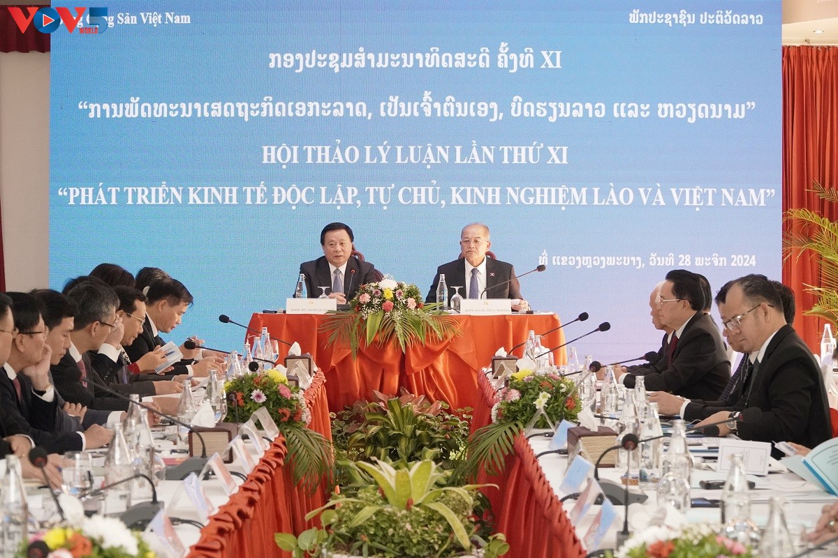 Hội thảo Lý luận lần thứ 11 giữa Đảng Cộng sản Việt Nam và Đảng Nhân dân Cách mạng Lào với chủ đề “Phát triển nền kinh tế độc lập, tự chủ - Kinh nghiệm của Việt Nam và Lào”. Ảnh: PV/VOV-Vientiane |