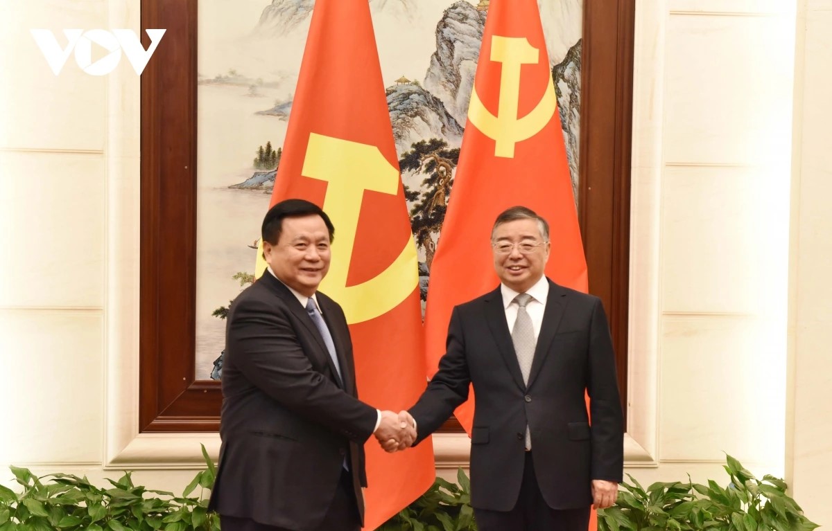 Giám đốc Học viện Chính trị Quốc gia Hồ Chí Minh Nguyễn Xuân Thắng và Bí thư Ban Bí thư, Trưởng Ban Tuyên truyền Trung ương Đảng Cộng sản Trung Quốc Lý Thư Lỗi - Ảnh: PV/VOV-Bắc Kinh |