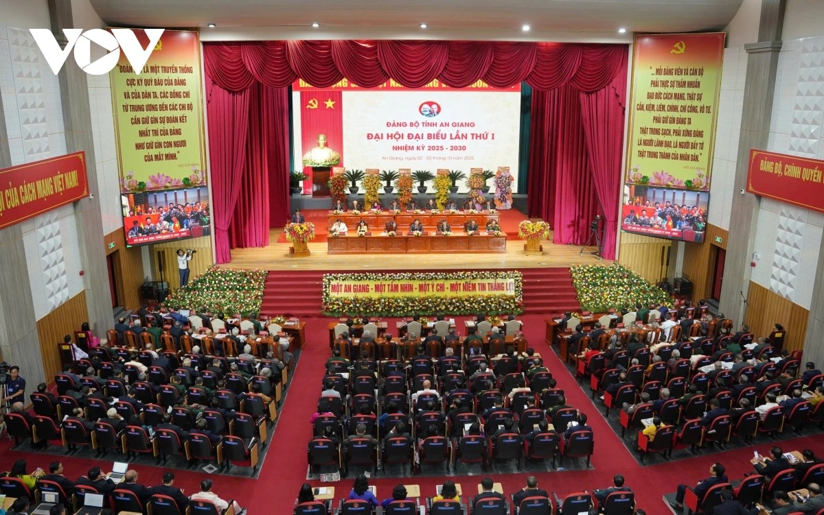 Quang cảnh Đại hội đại biểu Đảng bộ tỉnh An Giang. Ảnh: VOV |