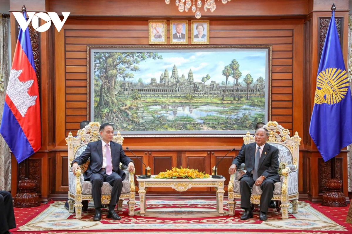 (VOV5) - Ngày 22/8, tại Thủ đô Phnom Penh, Chủ tịch Đảng Nhân dân Campuchia (CPP), Thủ tướng Chính phủ Hun Sen, Chủ tịch danh dự CPP, Chủ tịch Quốc hội Heng Samrin và Phó Chủ tịch CPP, Chủ tịch Thượng viện Say Chhum đã tiếp ông Lê Hoài Trung, Ủy viên Trung ương Đảng, Trưởng Ban Đối ngoại Trung ương đang có chuyến thăm chính thức Campuchia.