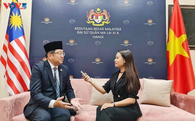 Đại sứ Malaysia tại Việt Nam Dato Tan Yang Thai trả lời phỏng vấn của phóng viên Đài Tiếng nói Việt Nam. Ảnh: VOV5 |