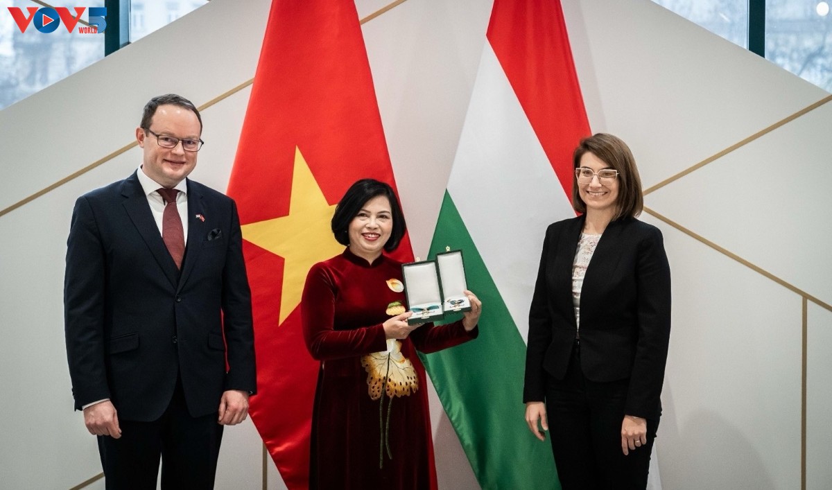 Đại sứ Nguyễn Thị Bích Thảo được trao tặng Huân chương Chữ thập Hungary. Ảnh: PV/VOV-CH Séc |