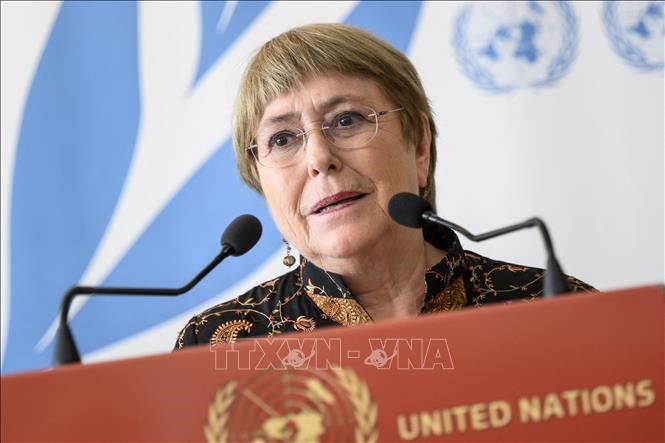 Cao ủy Liên hợp quốc về Nhân quyền Michelle Bachelet phát biểu tại lễ khai mạc Khóa họp lần thứ 50 Hội đồng Nhân quyền Liên hợp quốc ở Geneva, Thụy Sĩ, ngày 13/6/2022. Ảnh: AFP/TTXVN |