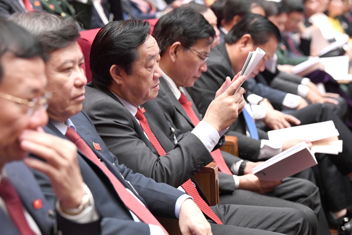 Các đại biểu nghiên cứu tài liệu tại Đại hội lần thứ XIII của Đảng