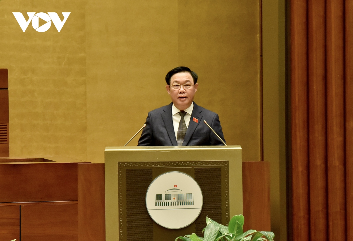 Chủ tịch Quốc hội Vương Đình Huệ phát biểu tại phiên khai mạc. Ảnh: Văn Hiếu/ VOV |
