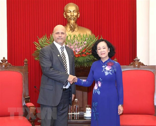 Thường trực Ban Bí thư Trương Thị Mai tiếp ông Gerardo Hernandez Nordelo, Chủ tịch Ủy ban Bảo vệ Cách mạng Cuba. Ảnh: Phương Hoa/TTXVN |