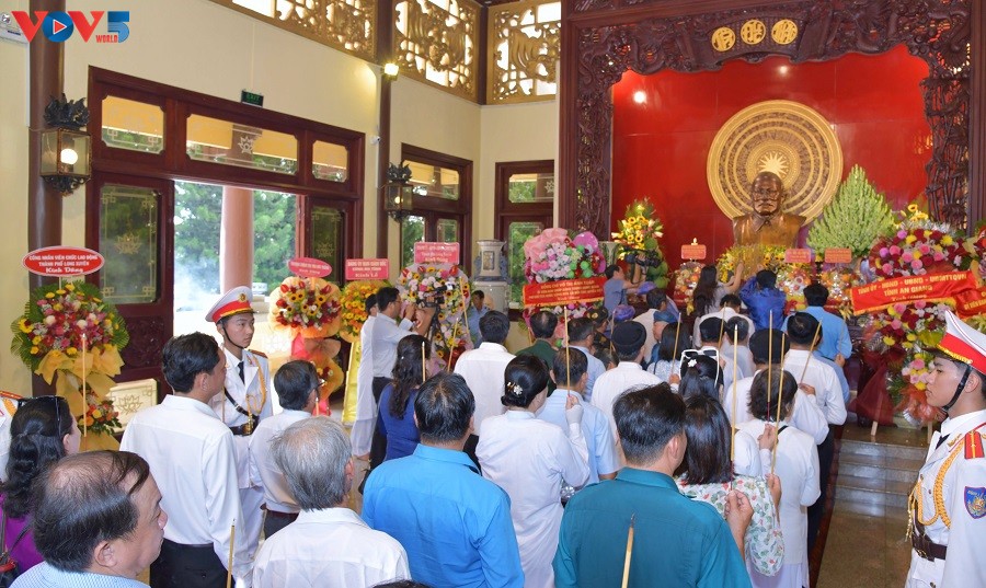 Đông đảo bà con nhân dân thành kính dâng hoa, dâng hương tưởng nhớ Chủ tịch Tôn Đức Thắng. Ảnh: Văn Ánh/VOV |