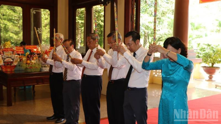 Lãnh đạo tỉnh An Giang thành kính dâng hương tưởng nhớ Chủ tịch Tôn Đức Thắng. Ảnh: nhandan.vn |
